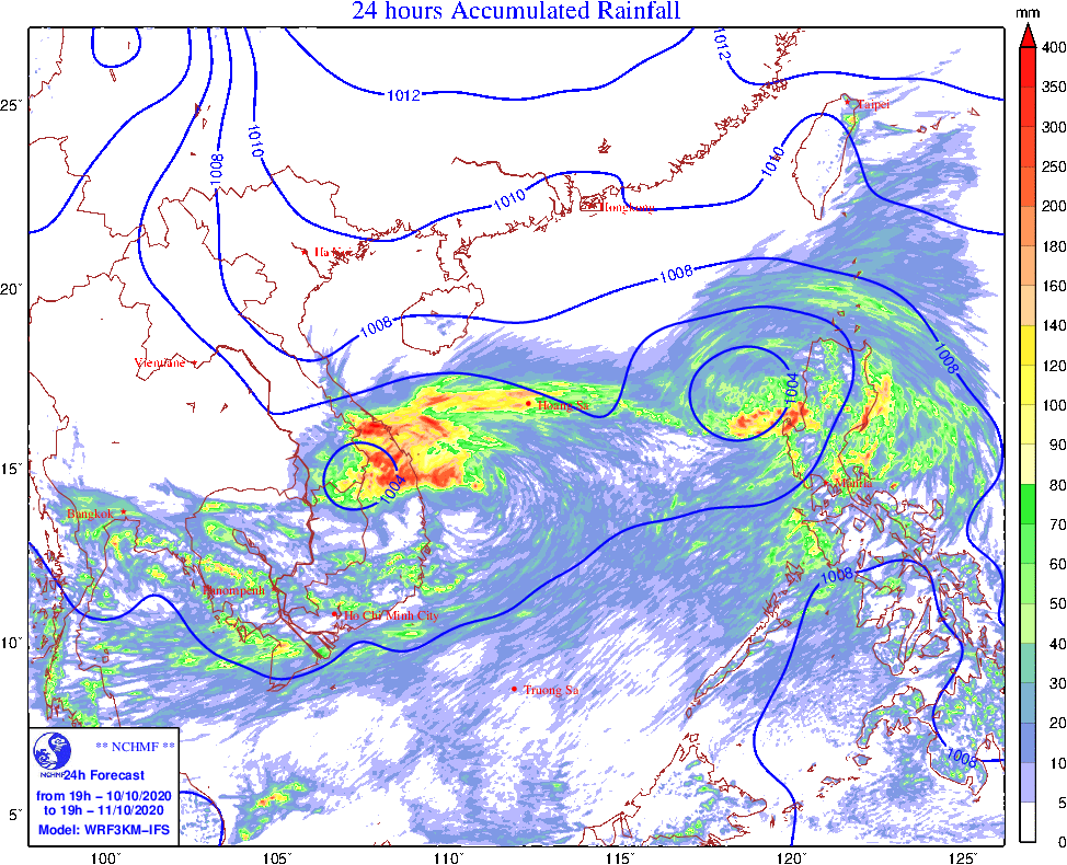 Ở các tỉnh Trung Trung Bộ và Nam Trung Bộ sẽ có mưa rất to, có nơi đặc biệt to từ ngày 11-13/10. Tổng lượng mưa phổ biến ở các tỉnh từ Thừa Thiên Huế đến Quảng Nam từ 400-600mm, có nơi trên 600mm; các tỉnh Quảng Trị, Quảng Ngãi từ 300-500mm; các tỉnh Quảng Bình, Bình Định, Phú Yên từ 200-400mm.