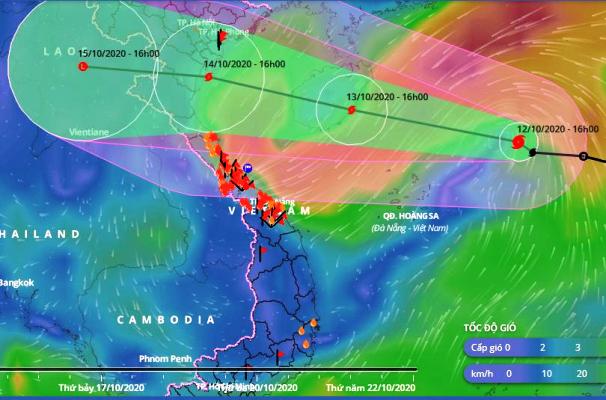 Đến 16 giờ ngày 13/10, vị trí tâm bão ở khoảng 18,8 độ Vĩ Bắc; 110,4 độ Kinh Đông, trên phía Đông đảo Hải Nam (Trung Quốc). Sức gió mạnh nhất vùng gần tâm bão mạnh cấp 10 (90-100km/giờ), giật cấp 12.