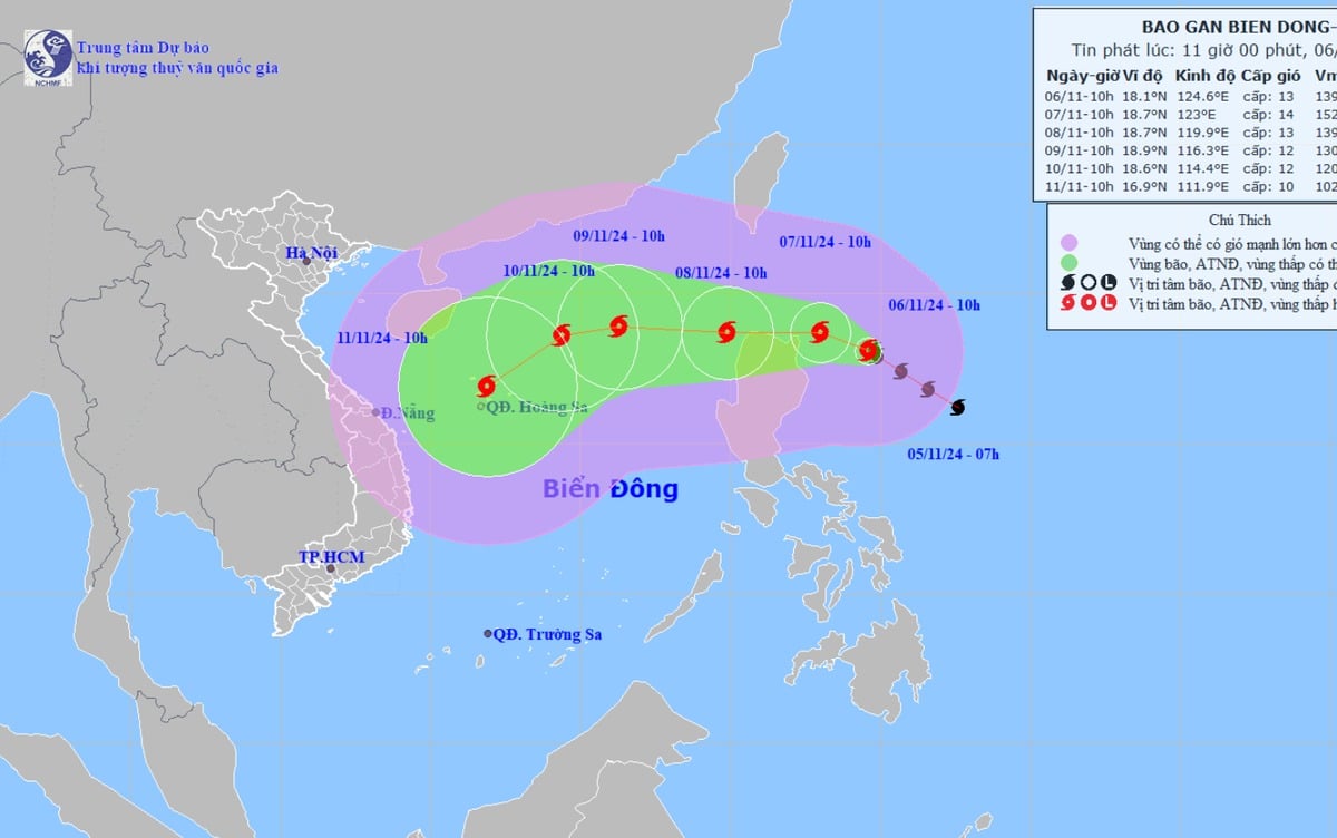 Trong 24 đến 48 giờ tiếp theo, bão di chuyển theo hướng tây và đi vào Biển Đông (ngày 8/11). Nhiều khả năng đây là cơn bão số 7 hoạt động trên Biển Đông trong năm 2024.