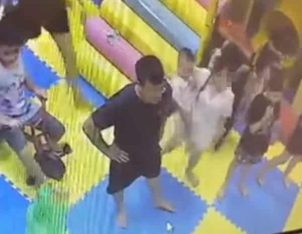 Người đàn ông (áo đen) bị xác định đã đánh bé gái trong khu vui chơi. (Ảnh chụp màn hình)