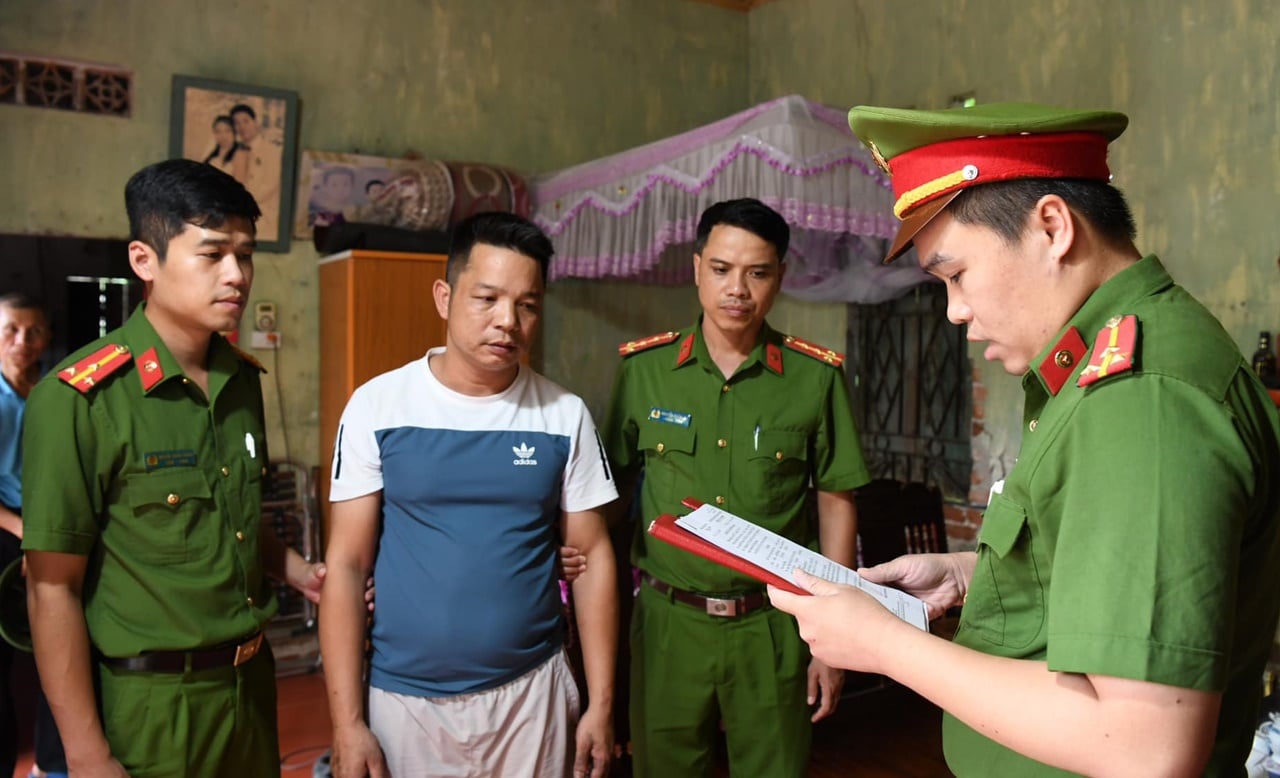 Ông Lê Xuân Hùng bị công an đọc lệnh bắt tại nhà. (Ảnh: Công an tỉnh Phú Thọ/Facebook)