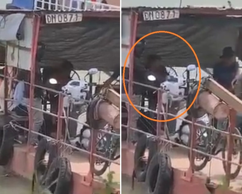 Bé trai hơn 10 tuổi trực tiếp điều khiển phà qua sông Đồng Nai. Xung quanh là nhiều người lớn và xe máy trên phà. (Ảnh chụp màn hình clip/Facebook)