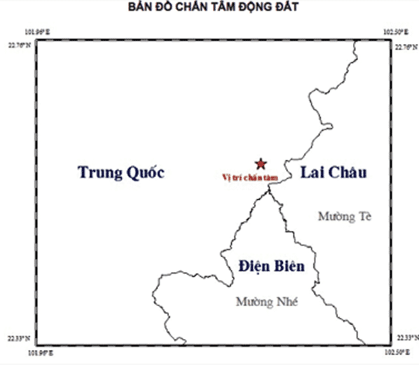Nơi xảy ra trận động đất thuộc khu vực biên giới tỉnh Vân Nam (Trung Quốc) cách ranh giới huyện Mường Tè, tỉnh Lai Châu khoảng 118 km.
