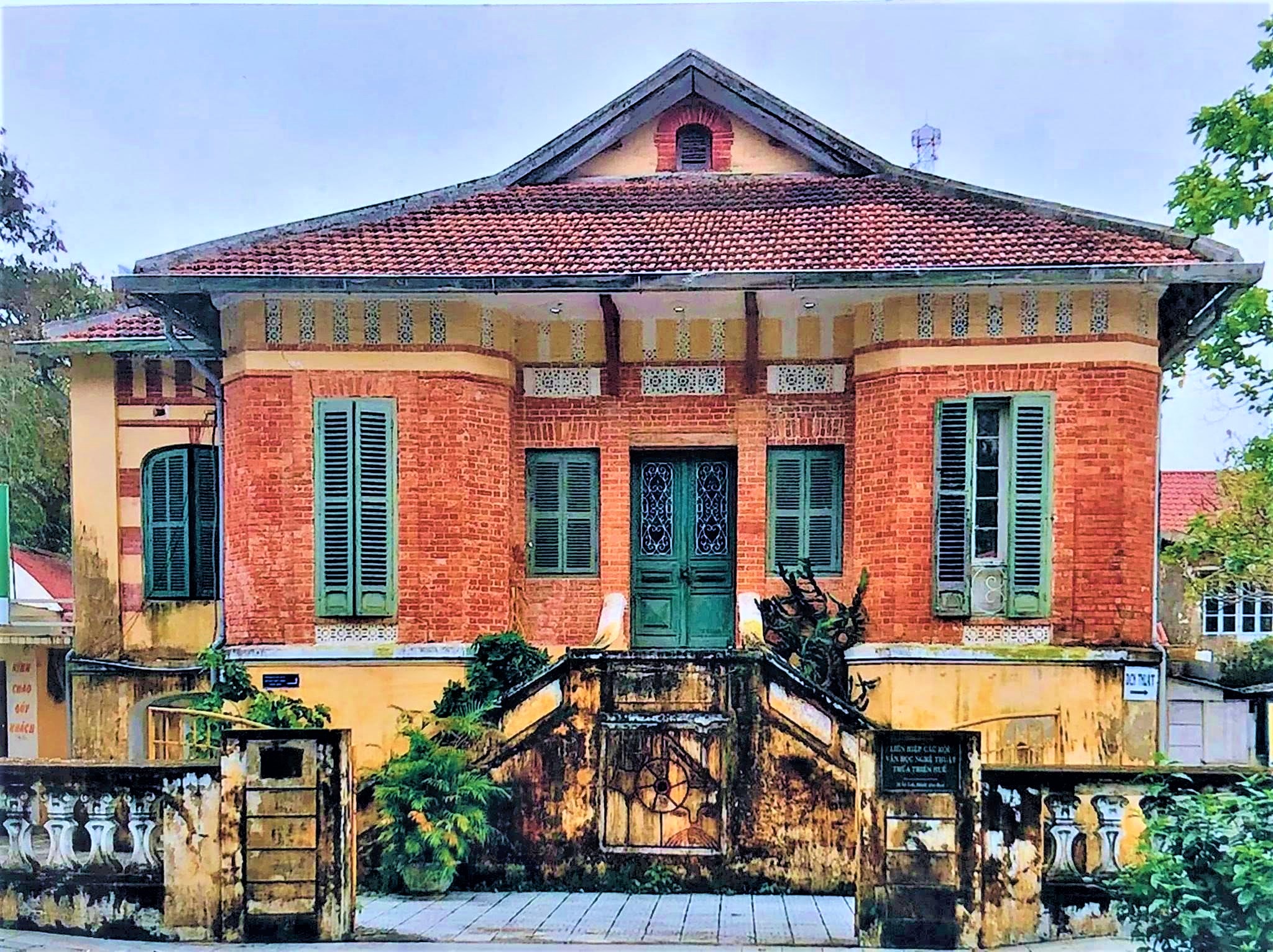 Công trình được xây dựng từ đầu thế kỷ XX, có tuổi đời hơn 100 năm. Sau năm 1975, đây là trụ sở của Liên hiệp các Hội Văn học nghệ thuật Thừa Thiên Huế và được sử dụng đến năm 2021. Từ năm 2022, sau khi các cơ quan chuyển đi, công trình bị bỏ hoang và nhiều hạng mục xuống cấp.