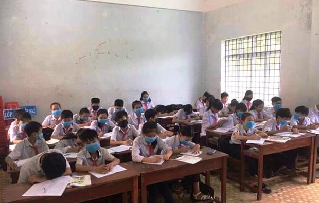 Trước đó, ngày 13/10, trên trang mạng xã hội Facebook xuất hiện hình ảnh hàng chục em học sinh thuộc Trường THCS Cát Trinh (huyện Phù Cát) phải đeo khẩu trang để học bài do môi trường ô nhiễm.