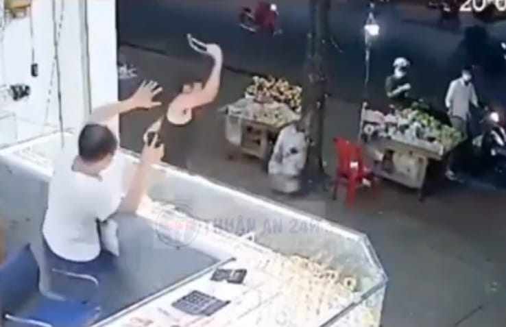 Khi chủ tiệm vàng tri hô, người này chạy ra ngoài, đứng trước cửa tiệm vàng chứ không bỏ chạy và bị những người dân xung quanh lao vào đánh, bắt giữ, rồi giao cho cơ quan công an.