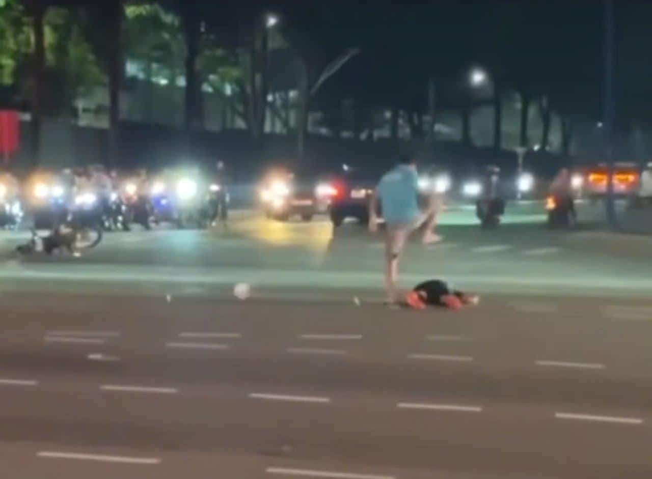 Theo đoạn video ghi lại sự việc được lan truyền trên mạng, anh B. bị bị can Hiền quật ngã xuống đường, dùng tay, chân và nón bảo hiểm đánh liên tiếp vào đầu.