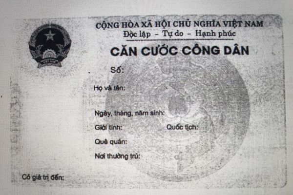 - Bên phải, từ trên xuống: dòng chữ “Căn cước công dân”; số; họ và tên; ngày, tháng, năm sinh; giới tính; quốc tịch; quê quán; nơi thường trú,…