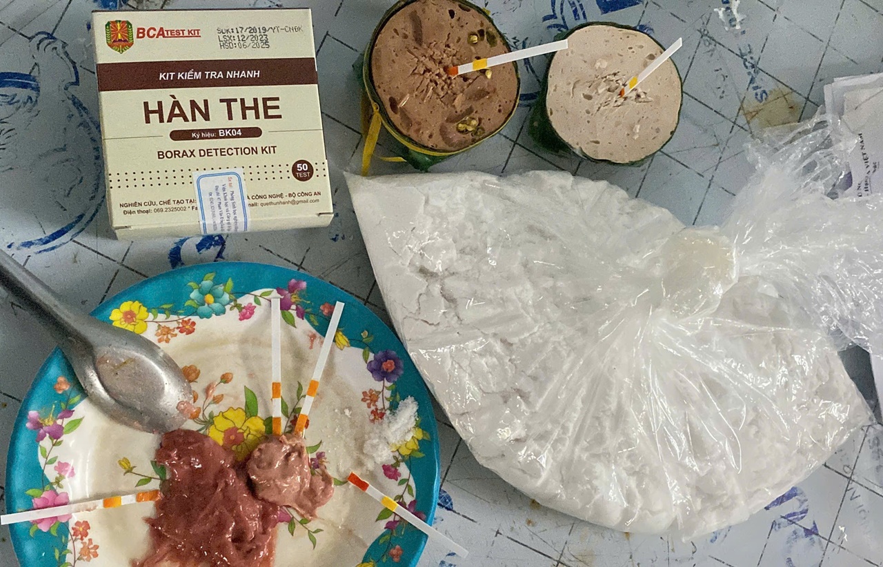 | Theo Viện Kiểm nghiệm an toàn vệ sinh thực phẩm quốc gia (Bộ Y tế), hàn the là muối natri của acid boric, trong đời sống ngoài tên hàn the còn được gọi bằng nhiều tên gọi khác như bằng sa, bồng sa, nguyên thạch. Hàn the có khả năng gây ngộ độc mãn tính nếu sử dụng với hàm lượng thấp trong thời gian dài, có thể dẫn đến những rối loạn tiêu hóa, hấp thụ, chuyển hóa chất dinh dưỡng, gây tổn hại đến gan, thận và não bộ. Ngộ độc cấp tính cũng có thể xảy ra sau 6-8 giờ tiêu thụ hàn the với liều lượng khoảng 5 gam trở lên, với các triệu chứng như: buồn nôn, nôn, tiêu chảy, xuất huyết đường tiêu hóa; đau đầu, hôn mê, co giật; mạch đập nhanh, trường hợp nặng sẽ tụt huyết áp, rối loạn nhịp tim, sốc; xuất hiện ban đỏ trên da, có thể có ở lòng bàn tay, mông, miệng, họng đỏ. Nhóm người dễ bị tổn thương là trẻ em và phụ nữ trong giai đoạn thai kỳ. Theo đó, hàn the không nằm trong danh mục phụ gia thực phẩm được phép sử dụng trong sản xuất kinh doanh, chế biến thực phẩm theo Thông tư số 24/2019/TT-BYT và Thông tư số 17/2023/TT-BYT. |