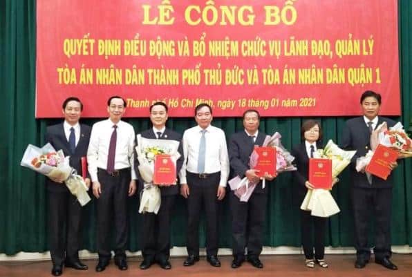 Ngoài ra, ông Vũ Thanh Lâm (SN 1972, nguyên Chánh án TAND quận Thủ Đức), ông Nguyễn Xuân Tùng (SN 1965, nguyên Chánh án TAND quận 9) và bà Nguyễn Thị Thu Sương (SN 1974, nguyên Chánh án TAND quận 7) cũng được điều động giữ chức vụ Phó Chánh án TAND TP. Thủ Đức.