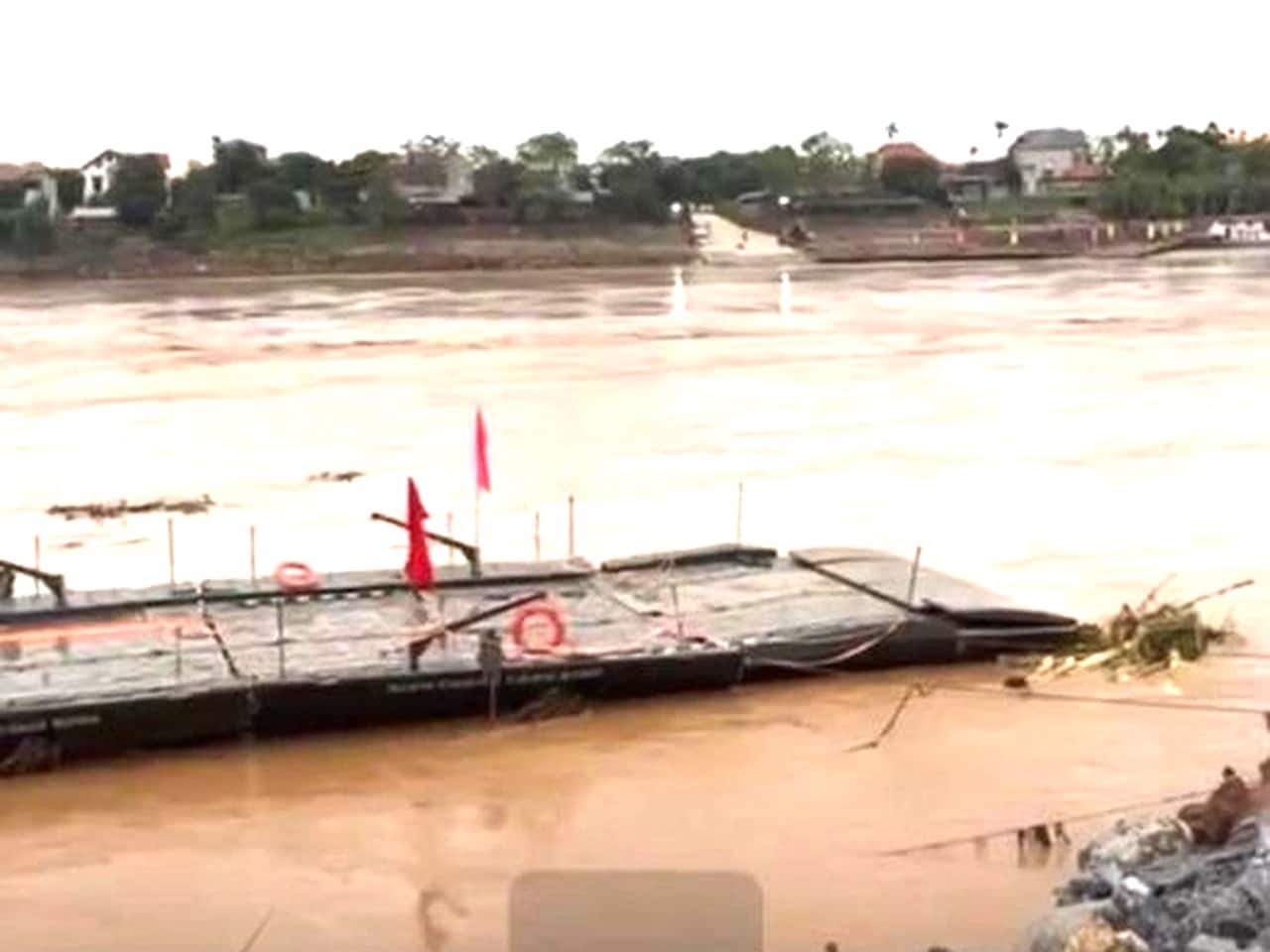 Tuy nhiên, do nước sông Hồng dâng cao, nhiều cây cối, vật cản trôi mắc vào, gây áp lực quá mức an toàn cho phép với cầu, nên cầu phao phải tạm dừng từ 18h chiều ngày 1/10.
