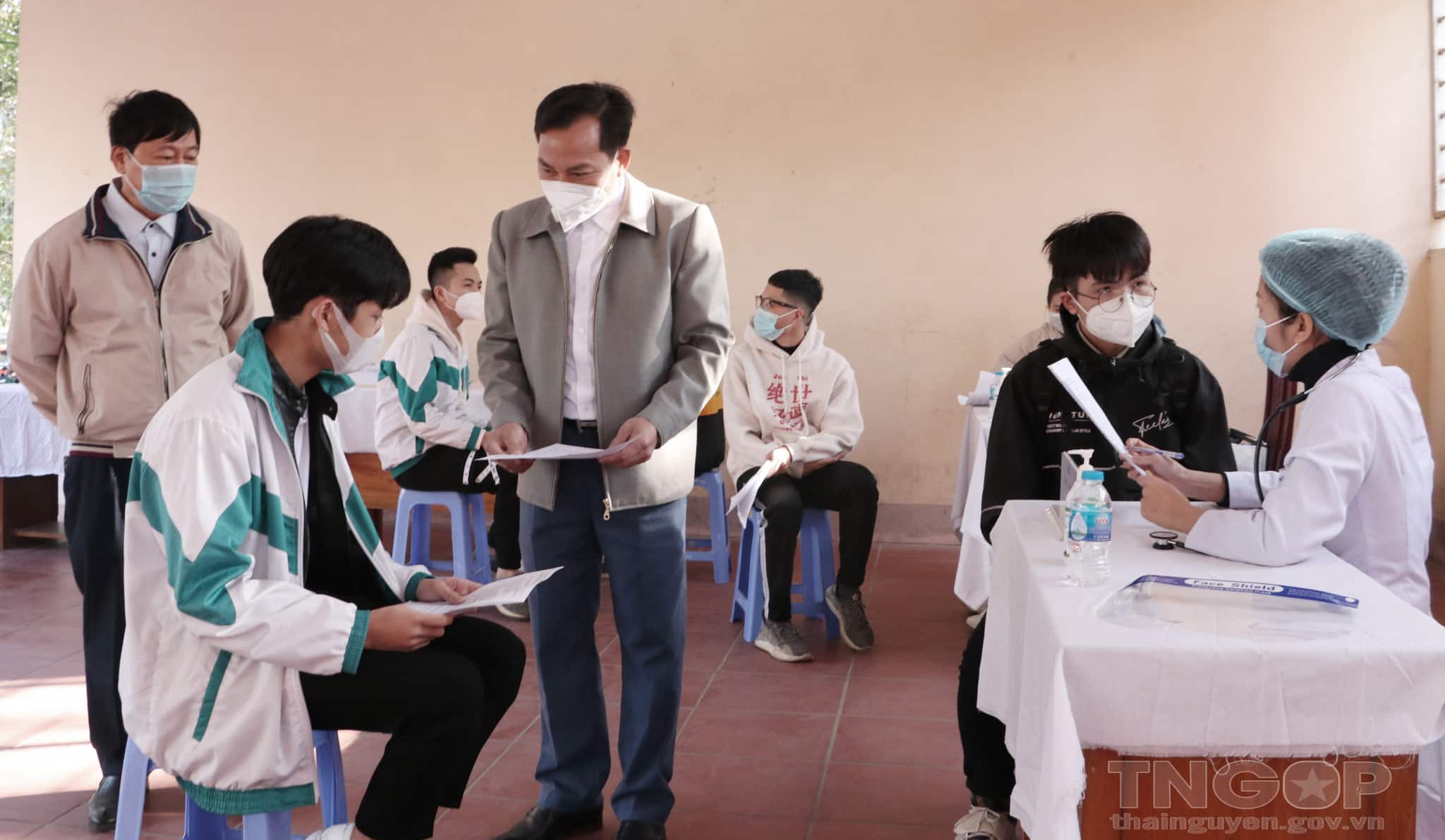 Ông Nguyễn Đức Thịnh, Phó Giám đốc Sở GD-ĐT tại điểm tiêm vắc-xin COVID-19 cho học sinh từ 12 - 17 tuổi, ại Trường THPT Lương Ngọc Quyến (TP. Thái Nguyên), tháng 12/2021. (Ảnh minh họa: thainguyen.gov.vn)