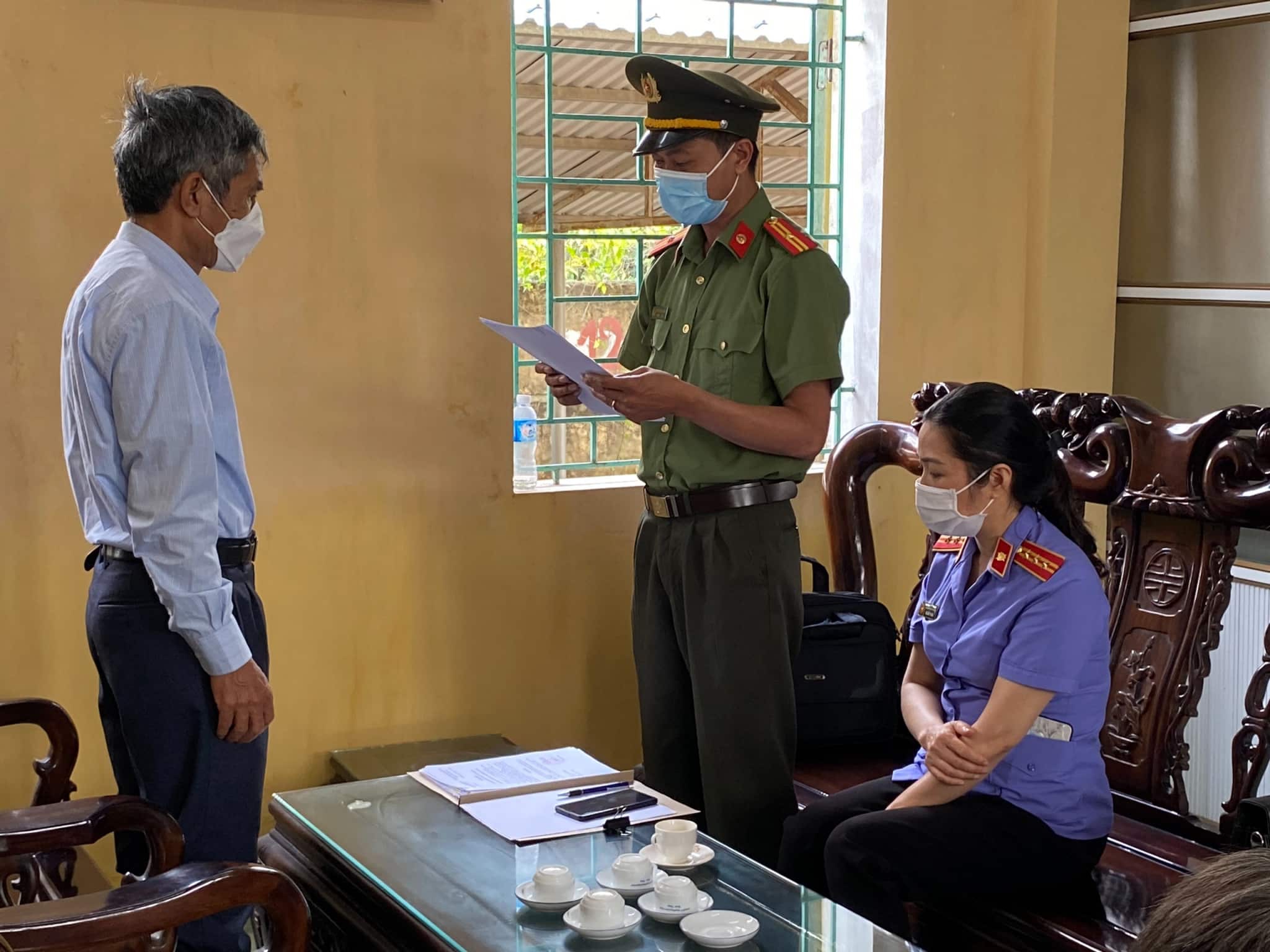 Cơ quan điều tra đọc quyết định khởi tố bị can Trần Đăng Nghiêm. (Ảnh: congan.namdinh.gov.vn)