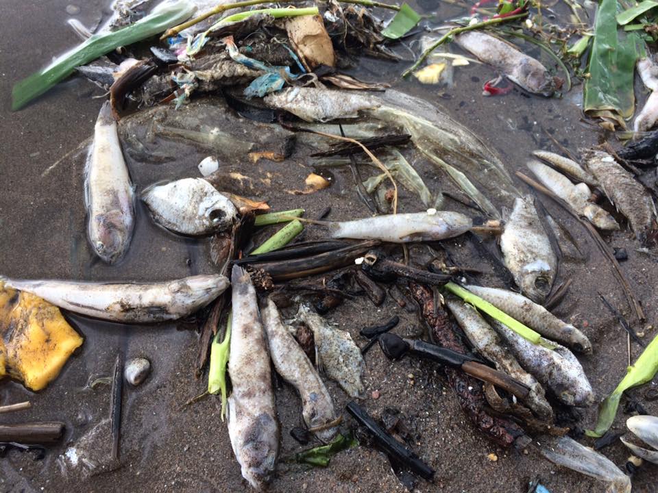 Hiện xác cá, nghêu… bị phân hủy, bốc mùi nồng nặc, gây ô nhiễm môi trường nước và không khí.