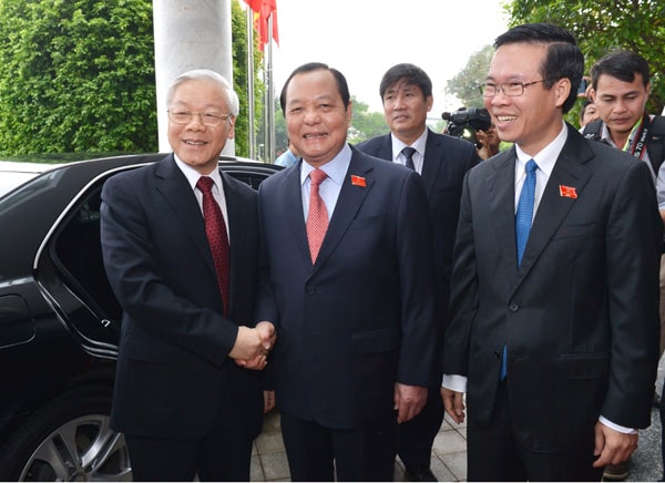Ông Lê Thanh Hải (giữa), Ủy viên Bộ Chính trị, Bí thư Thành ủy đón chào ông Nguyễn Phú Trọng Tổng Bí thư Ban Chấp hành Trung ương Đảng dự Đại hội đại biểu Đảng bộ TP.HCM lần thứ X nhiệm kỳ 2015 – 2020. (Ảnh: hcmcpv.org.vn)