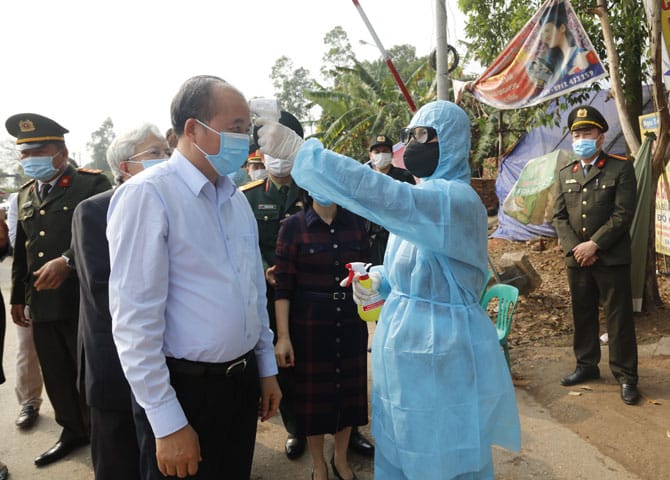Tại thời điểm này, xã Sơn Lôi, huyện Bình Xuyên ghi nhận 7 trường hợp nhiễm virus Corona. Toàn bộ xã Sơn Lôi, huyện Bình Xuyên với gần 11.000 người đã bị phong toả hoàn toàn từ chiều ngày 12/2 sau khi ghi nhận ca nhiễm virus corona thứ 6.