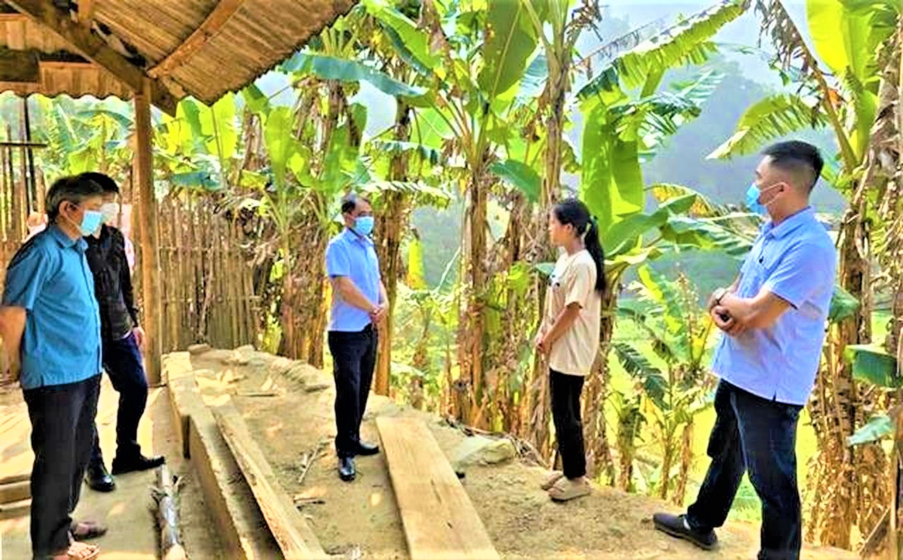 Đoàn công tác thăm hỏi gia đình bệnh nhi tử vong nghi ho gà tại xóm Bản Chang. (Ảnh: soyte.caobang.gov.vn)