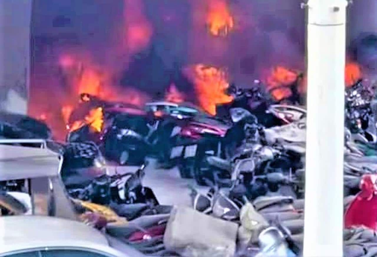 Vụ hỏa hoạn thiêu rụi khoảng 500 xe máy vi phạm giao thông (đã rút xăng) trên diện tích 300 m2, do Công ty TNHH MTV Khai thác điểm đỗ xe Hà Nội và Công ty TNHH Vận tải và Giao nhận Giang Linh quản lý.