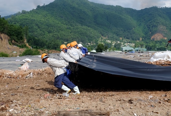 Việc phủ bạt HDPE các hộc chôn lấp rác thải tại bãi rác Khánh Sơn do Sở Tài nguyên và Môi trường (TN-MT) bắt đầu thi công từ ngày 12/9.