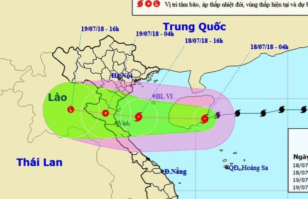 Dự báo trong 24 giờ tới, bão di chuyển nhanh theo hướng Tây, mỗi giờ đi được khoảng 25-30km; khoảng chiều tối nay (18/7), vùng tâm bão với sức gió mạnh cấp 8, giật cấp 10 sẽ ảnh hưởng trực tiếp đến khu vực ven biển các tỉnh từ Thái Bình đến Hà Tĩnh, sau đó bão sẽ đi vào đất liền và suy yếu thành áp thấp nhiệt đới.