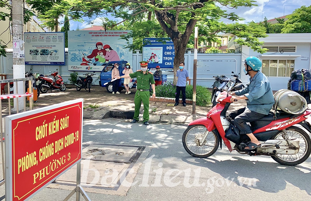 Từ ngày 21/11 tới nay, Bạc Liêu chỉ cho hàng quán mở từ 4h sáng đến 19h hàng ngày, bán mang về. Người dân không được ra khỏi nhà từ 8h tối đến 4h sáng hôm sau. Ảnh: Một chốt kiểm soát việc đi lại của người dân tại thởi điể áp dụng Chỉ thị 16, tháng 8/2021. (Ảnh: baclieu.gov.vn)