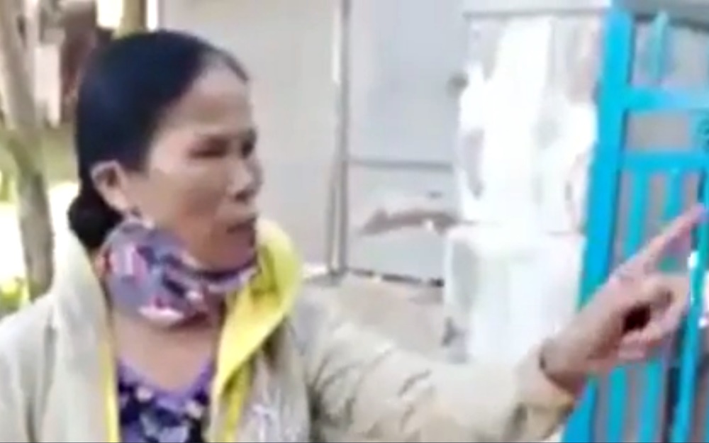 Bà Nguyễn Thị Chút đến nhóm trẻ đòi bắt con trai của bà Cao Thị Gái. (Nguồn: Facebook)