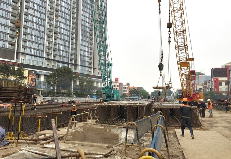 Thi công tại ga ngầm S9, tuyến đường sắt đô thị đoạn Nhổn - Ga Hà Nội. (Ảnh: Tuấn Lương/hanoimoi.com.vn)