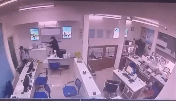 Lúc này, nhân viên bảo vệ ngân hàng nhanh trí ấn công tắc hạ cửa cuốn ra vào nhằm không cho nghi phạm thoát ra ngoài và báo động.