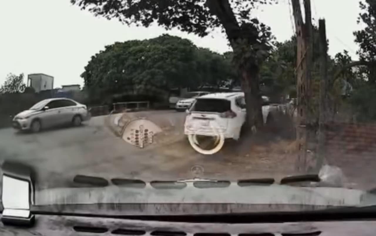 Video cảnh ô tô 7 chỗ lao xuống mương ở Nam Định chiều mùng 2 Tết, trích xuất từ camera hành trình một chiếc xe đậu ven đường. (Nguồn: dẫn qua Mạng xã hội Giao thông/Facebook)