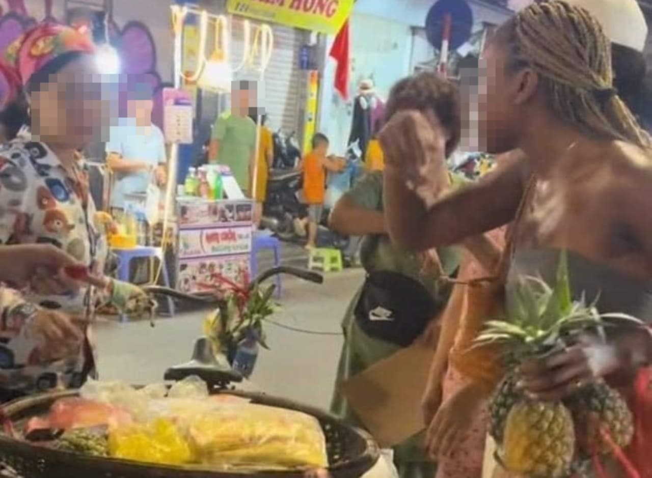 Bị người bảo vệ và nhiều người xung quanh nói, người bán hàng rong trả lại tờ 500.000 đồng. Hai du khách lấy lại tiền, tức giận bỏ lại ba quả dứa và rời đi.