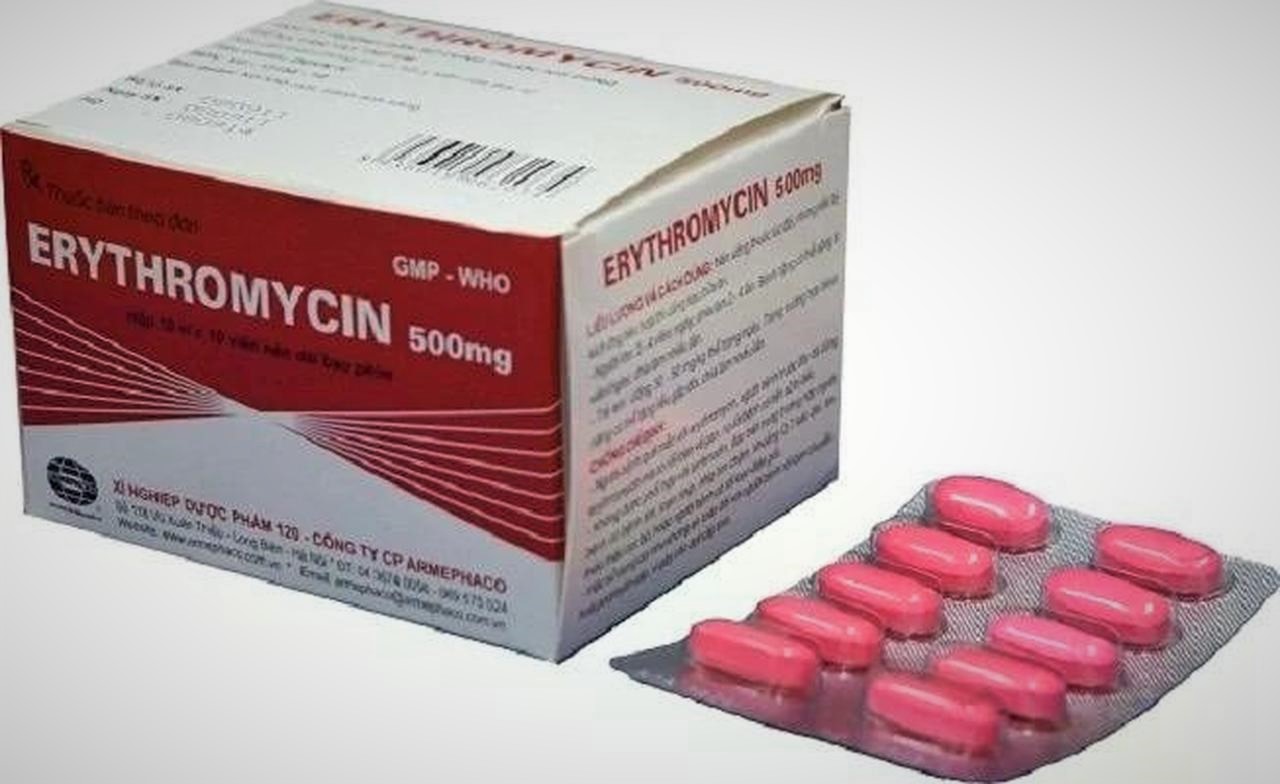 Thuốc viên nén bao phim Erythromycin 500mg. (Ảnh: thuonggiaonline.vn)