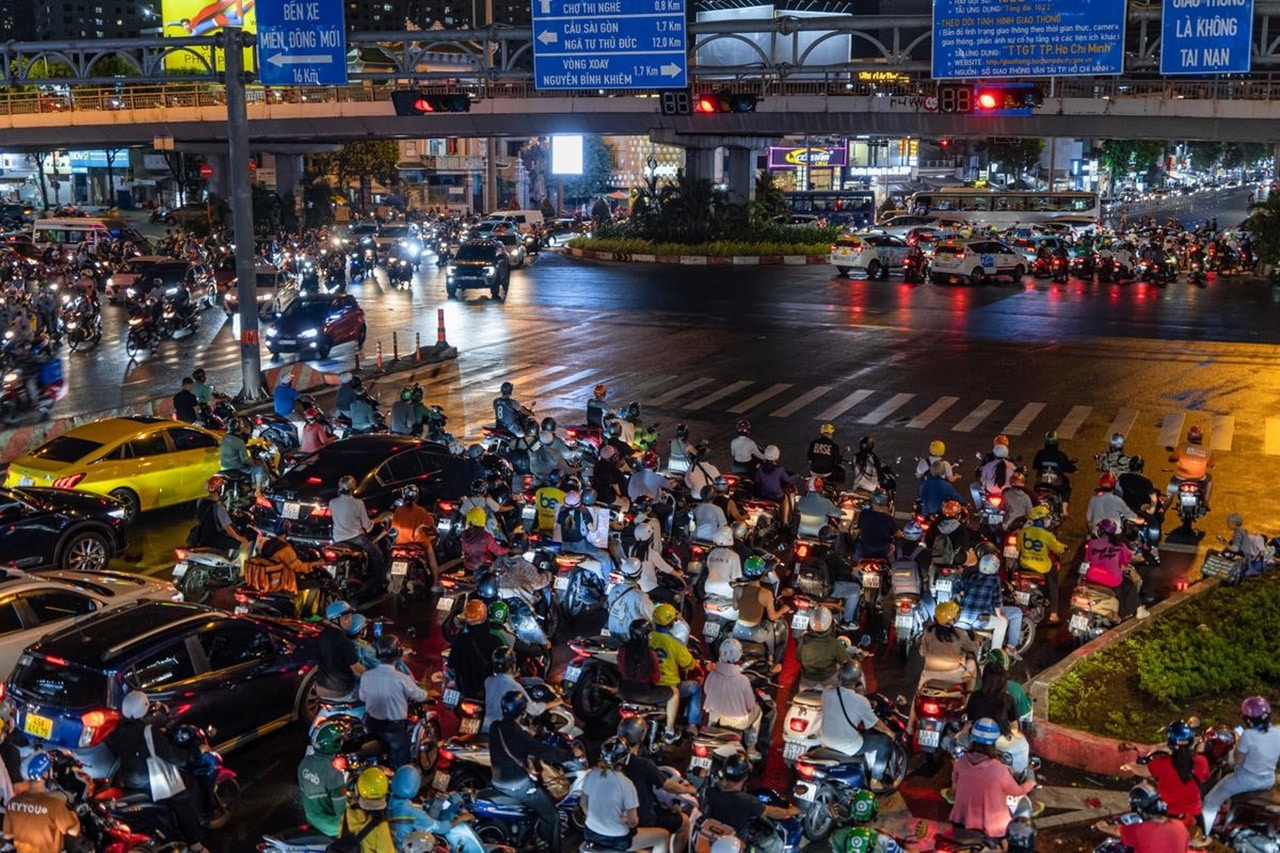 Các luồng xe đi, dừng trước đèn giao thông tại một ngã tư ở quận Bình Thạnh (TP.HCM), tháng 6/2024. (Ảnh minh họa: Scout901/Shutterstock)