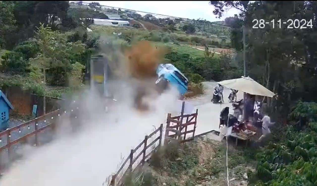 Khi qua khúc cua trước điểm du lịch Wilder Nest, xe taxi đã bất ngờ lao vào hàng rào bên trái chiều lưu thông, lộn nhiều vòng.