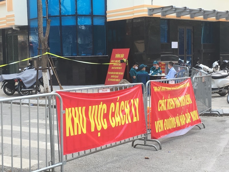 Chốt chặn phong tỏa trên phố Trúc Bạch (quận Ba Đình), nơi sinh sống của bệnh nhân COVID-19 thứ 17 và bệnh nhân 21 (Ảnh: TTVN)