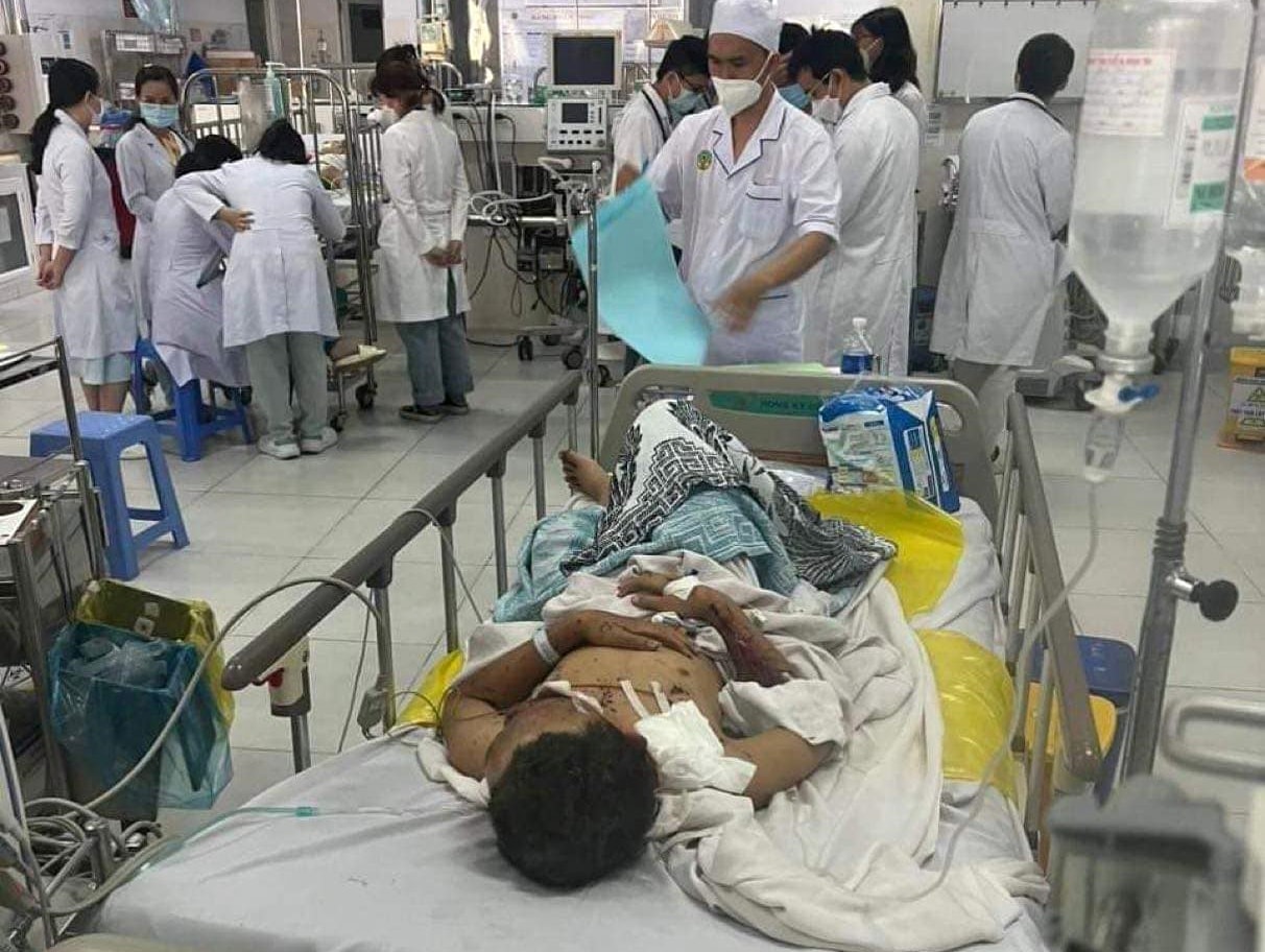 Theo đó, trong vụ nổ trên, đến nay đã có 2 trẻ tử vong, còn lại 2 trẻ đang được các bác sĩ tích cực điều trị. Trong đó, em B.A. bị bỏng, bị thương nhiều nơi trên cơ thể, đã tỉnh táo, có thể nói chuyện, đang được điều trị tại khoa Chấn thương chỉnh hình của Bệnh viện. Em M.T. bị đa chấn thương, các vết thương nham nhở ở vùng hàm mặt, vai, ngực, cẳng chân, bỏng mắt, được chuyển viện đến TP.HCM để cấp cứu.