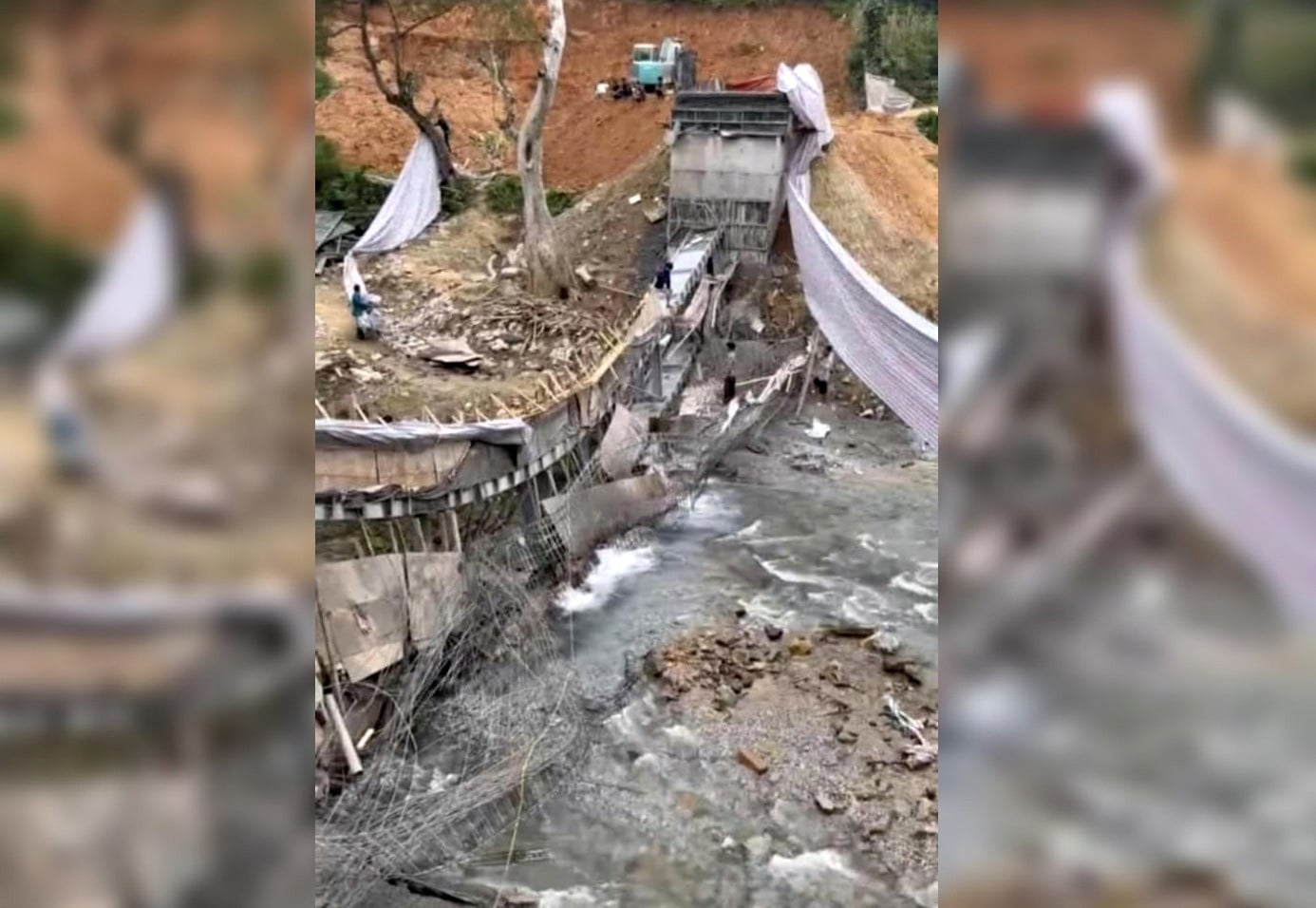 Toàn cảnh cây cầu Lũng Cáng bị sập khi thi công phần mặt cầu. (Video: Trung Cao/Facebook)