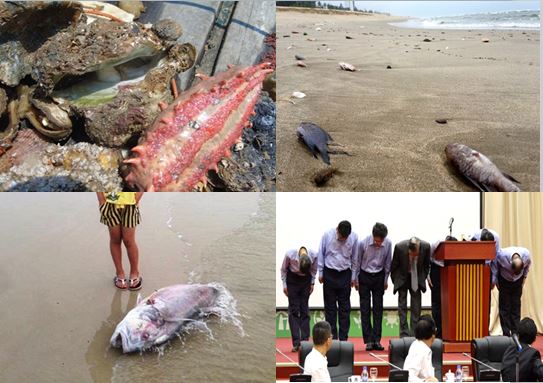 | Từ ngày 6/4/2016, hiện tượng cá chết hàng loạt bắt đầu xuất hiện gần khu công nghiệp Vũng Áng (Sơn Dương, Kỳ Anh, Hà Tĩnh), sau đó lan đến Quảng Bình, Quảng Trị, Thừa Thiên – Huế, gây nên những thiệt hại nghiêm trọng về kinh tế, xã hội và môi trường biển tại 4 tỉnh miền Trung. 7 bộ ngành cùng các viện nghiên cứu, 100 nhà khoa học trong và ngoài nước đã tham gia tìm nguyên nhân sự cố. Sau gần 2 tháng, công ty Formosa thừa nhận là thủ phạm gây ra thảm họa cá chết tại 4 tỉnh miền Trung và cam kết bồi thường 500 triệu USD để khắc phục hậu quả và cải tạo môi trường. |