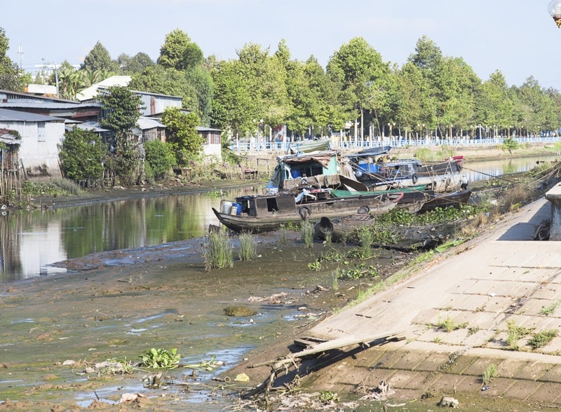 Do El Nino và số lượng đập ở thượng nguồn ngày càng tăng, ĐBSCL trải qua đợt hạn hán, xâm mặn tồi tệ nhất trong nhiều thập kỷ ở mùa khô 2015-2016. Ảnh tại Cao Lãnh, ngày 19/3/2016. (Ảnh: Shuttetstock)