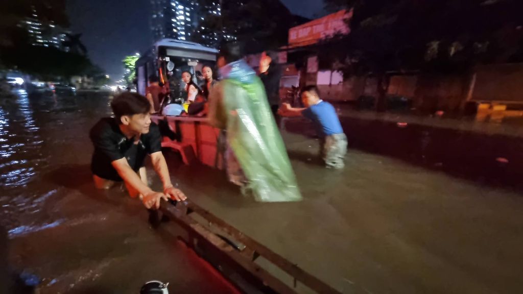 “Một cơn mưa và mọi thứ ngưng trệ. Nước ngập. Xe chết máy. Đường tắc nghẽn khắp nơi. Gọi xe bây giờ là không thể” – chị Hoàn – phóng viên một thời của Trung tâm Tin tức VTV24 viết.