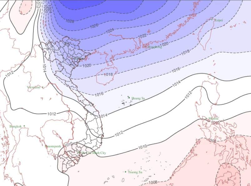 Từ ngày 27/1, vùng biển từ Quảng Trị đến Cà Mau, khu vực giữa Biển Đông có gió Đông Bắc mạnh dần lên cấp 6-7, giật cấp 8-9, sóng biển cao 3-5 m, biển động mạnh; vùng biển phía Tây khu vực Nam Biển Đông (bao gồm cả vùng biển phía Tây quần đảo Trường Sa) có gió Đông Bắc mạnh dần lên cấp 6, giật cấp 7-8, sóng biển cao 2-4,5 m, biển động.