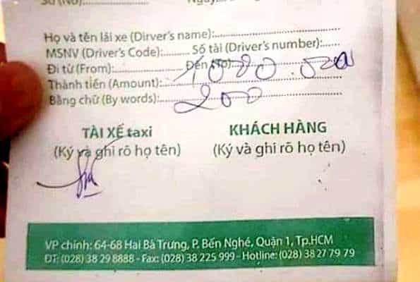Điều đáng nói, tài xế này đã ghi biên nhận và thu của khách 1,2 triệu đồng cho quãng đường khoảng 8km. Biên nhận có logo, màu sắc giống taxi Mai Linh.