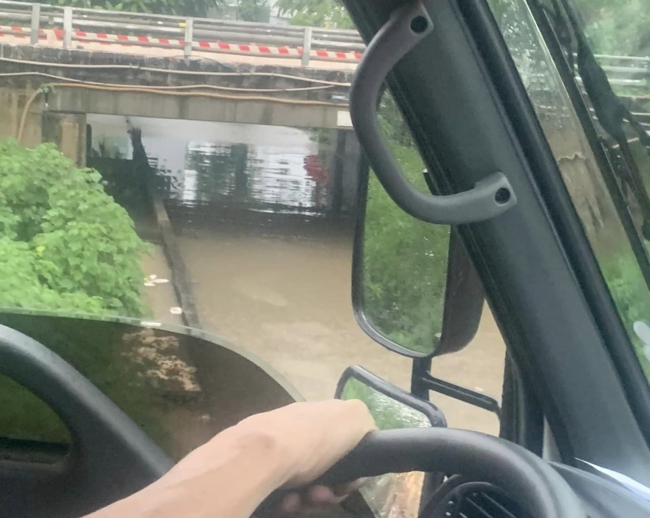 “Đường gom Đại Lộ Thăng Long bị ngập, có nơi ngập sâu gần 1m có lẽ đây cũng là cái túi gom nước từ nơi khác dồn về” – ông Huy nhận định.