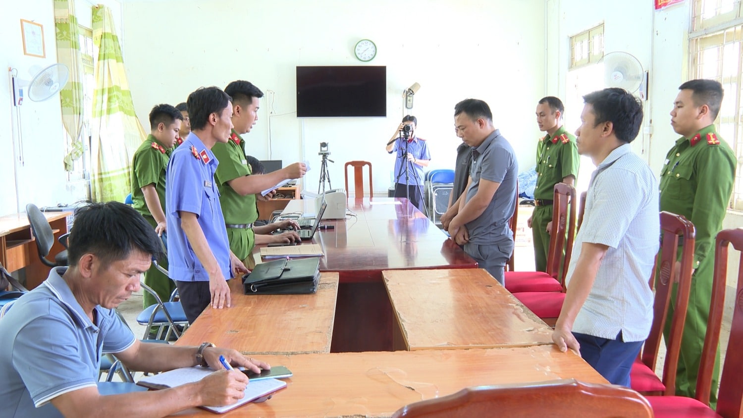 Cơ quan chức năng cũng đã khám xét nơi làm việc của 2 cán bộ này.