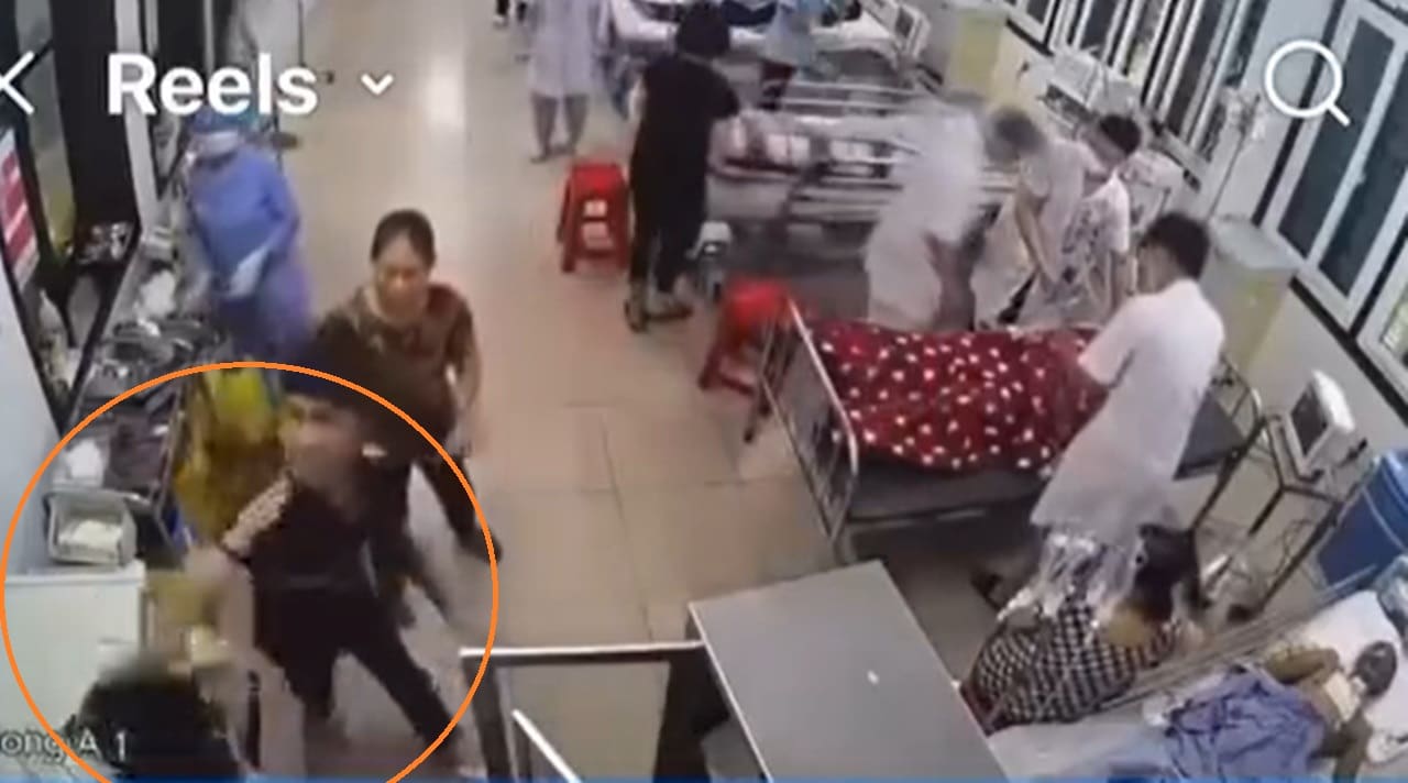 Một phụ nữ lớn tuổi can ngăn, sau đó hai người lớn tuổi khác (cùng là thân nhân) ra đưa nam nhân viên y tế ra khỏi phòng hồi sức. Khi bị hành hung, nam nhân viên y tế ôm mặt che chắn, không có hành vi chống trả.