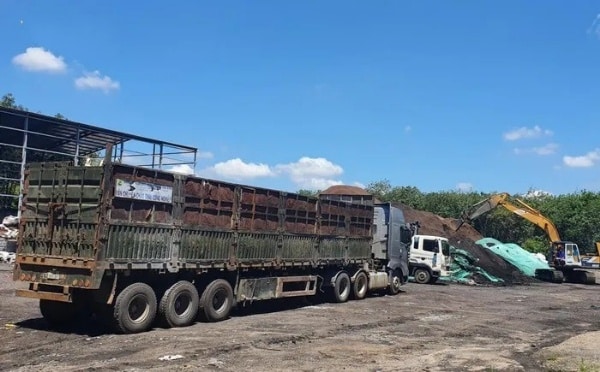 Thời điểm kiểm tra, lực lượng chức năng phát hiện có khoảng 20 lao động, 10 xe tải và xe đầu kéo loại lớn làm việc thường xuyên tại xưởng trên có diện tích khoảng 2ha, được chia thành 5 khu chôn lấp chất thải.