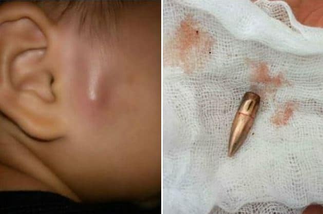 Sáng ngày 14/6, bé Nguyễn Hải Phong (3 tuổi) đang chơi tại cơ sở mầm non tư thục Họa Mi (ở thị trấn Gia Khánh) bất ngờ bị chảy máu ở thái dương bên phải. Hai ngày sau, gia đình đưa bé đi khám. Kết quả chụp chiếu xác định bên trong má của bé có một đầu đạn hình trụ, chiều dài 26,9 m, màu đỏ đồng, đường kính 7,6 mm nằm dưới da, trước tai phải.