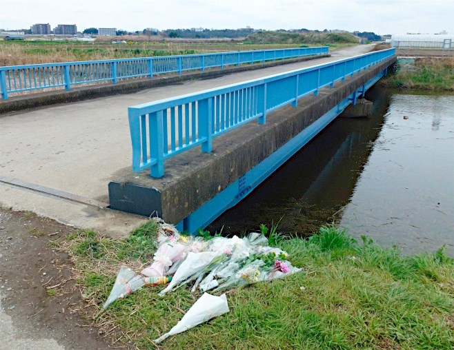 Hoa được đặt tại khu vực tìm thấy thi thể cháu Linh. (Ảnh: Asahi)