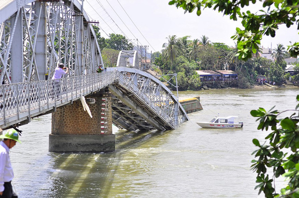 Hiện trường vụ sập cầu Ghềnh ngày 20/3/2016. (Ảnh: sggp.org.vn)