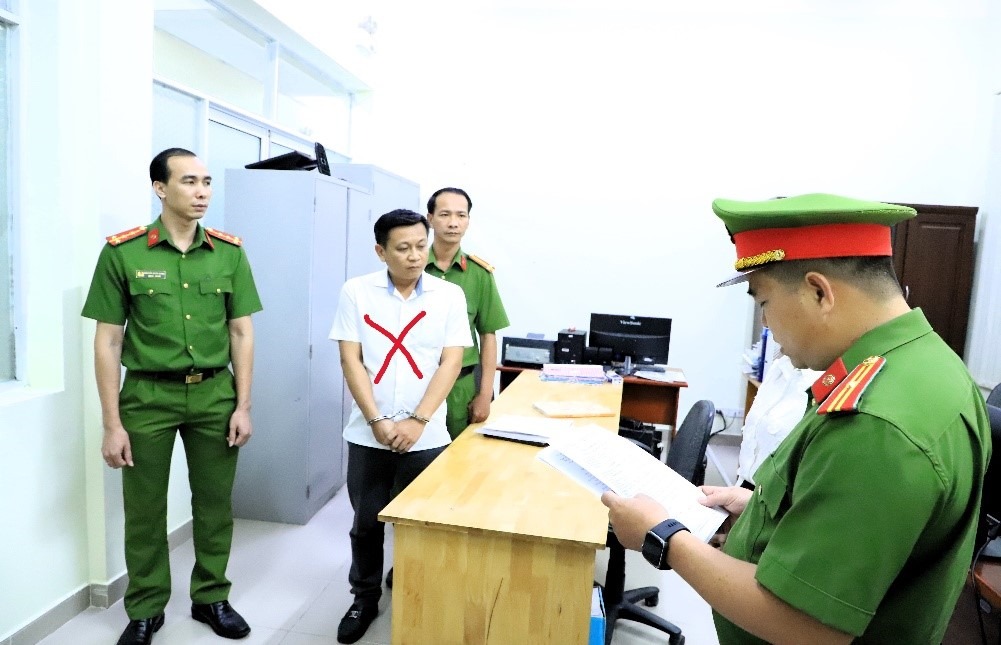 Ông Nguyễn Hiếu Cường nghe công an khởi tố, bắt tạm giam. (Ảnh: congandongnai.gov.vn)