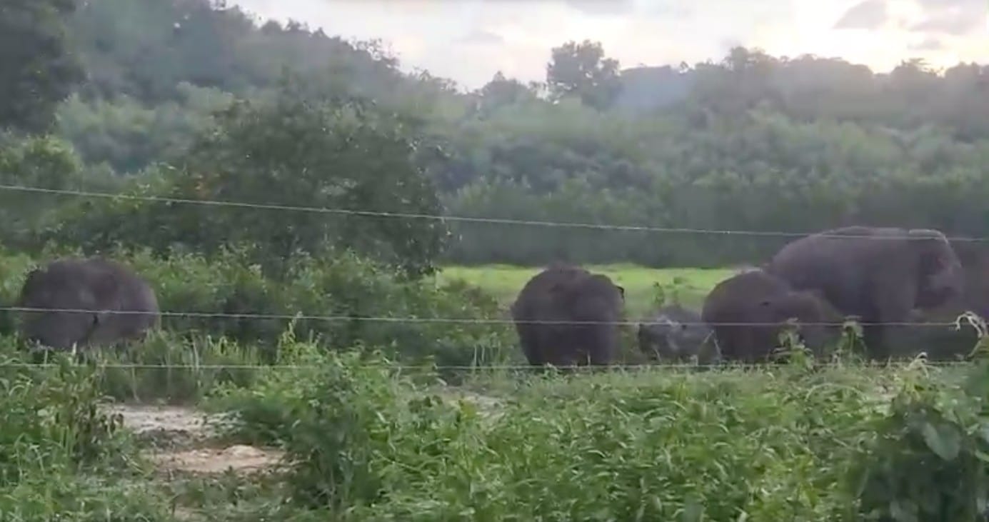Chiều ngày 11/6, tại đồi Đá Trắng, xã Thanh Sơn, huyện Định Quán (tỉnh Đồng Nai), một đàn voi rừng tiến vào sát khu vực rẫy của người dân nhưng bị hàng rào lưới điện chặn lại.